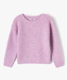 En plein coeur de l’hiver, rien de tel qu'un pull en grosse maille pour compléter la garde-robe des filles. Spécialement conçu pour les jeunes fashionistas, ce pull fille est tricoté dans une grosse maille déclinée dans un coloris girly qui illuminera chaque tenue. Sa coupe ample et son col rond offrent un confort exceptionnel. Sur l'avant, un jeu de maille en forme de V ajoute une touche de style supplémentaire. Les filles pourront associer ce pull chaud à un jean et des bottines pour créer un look à la fois élégant et décontracté. Les finitions en bord-côte apportent la touche finale à ce vêtement.