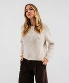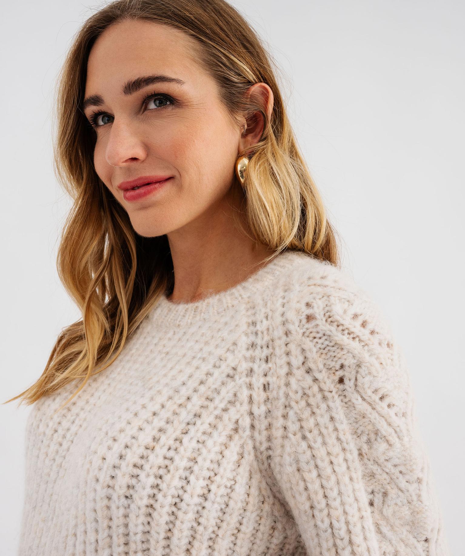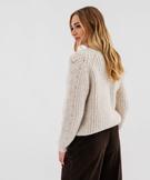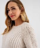 Pull en grosse maille avec torsades sur les manches femme beige clair