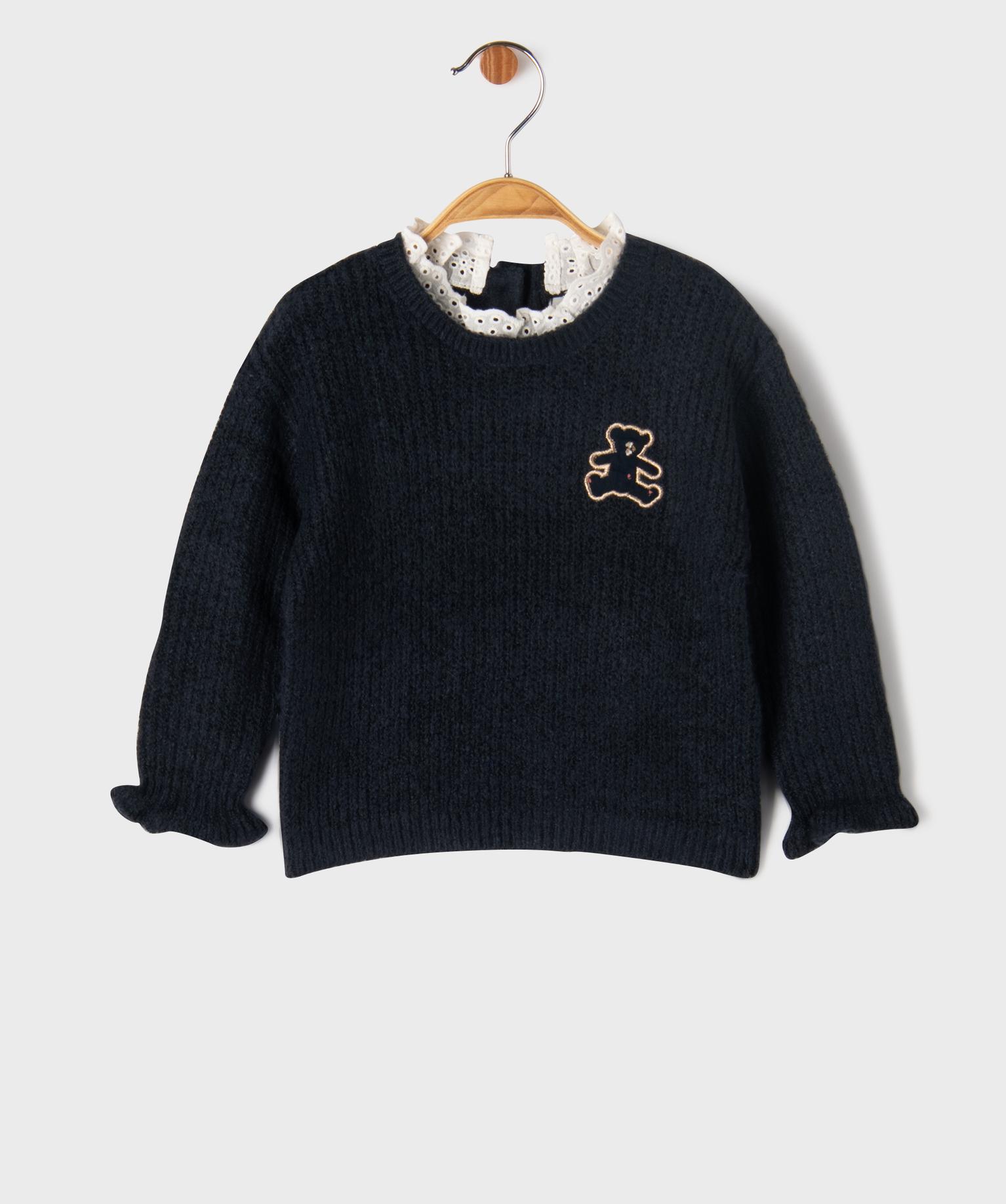 Pull en grosse maille douillette à col dentelle bébé fille - LuluCastagnette[MISSING] marine