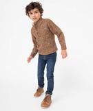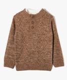 Pull en grosse maille torsadée avec col montant garçon marron