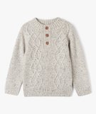 Ce pull pour garçon en grosse maille torsadée affiche un look casual au top de la tendance ! Tricoté dans une maille douce et confortable, il offre juste ce qu'il faut de chaleur pour des tenues douillettes. En plus de son style d'inspiration outdoor, le pull en maille présente un col rond boutonné sur l'avant. La maille chinée au coloris nature s'accorde à merveille avec un pantalon chino ou un jean brut. Col rond 3 boutons. Finition bord-côte aux poignets, au col et dans le bas. Dos sans torsade.