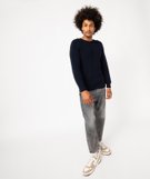 Pull en grosse maille unie avec boutons à l'épaule homme bleu marine