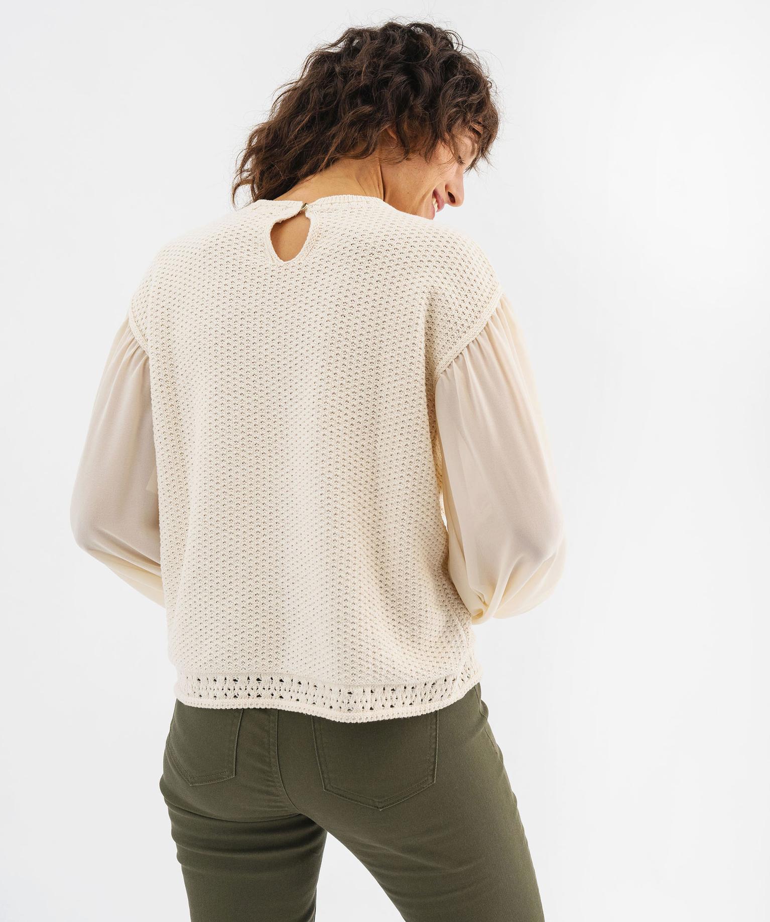 Pull en maille ajourée à manches blousantes en voile femme[MISSING] blanc