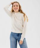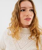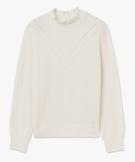 Pull en maille ajourée avec col montant froncé femme blanc chine