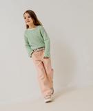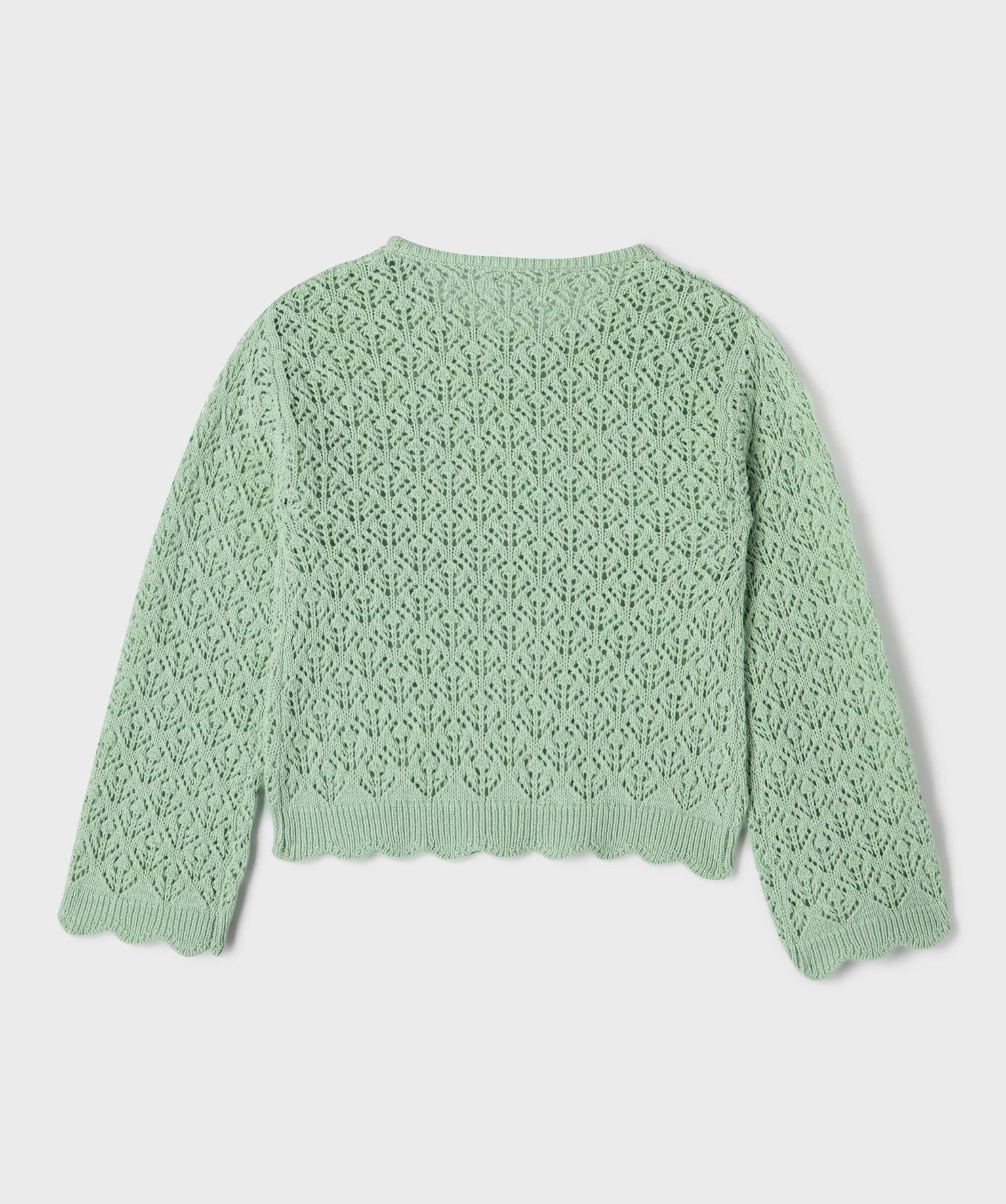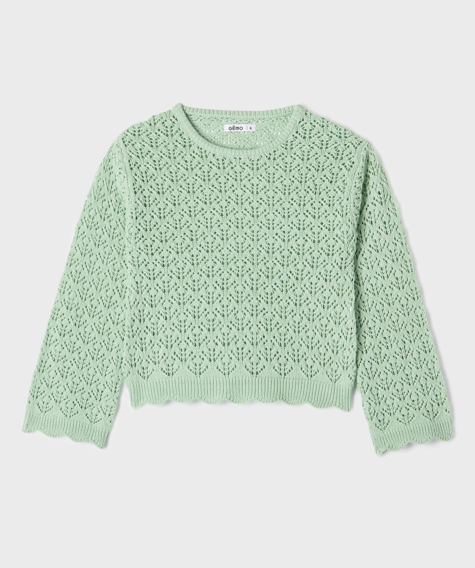 Pull en maille ajourée avec finitions dentelées fille vert clair