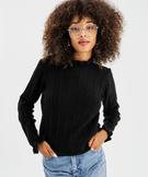 Pull en maille ajourée avec finitions froncées femme noir