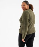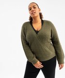 Pull en maille ajourée et encolure cache-cœur à dentelle femme grande taille kaki