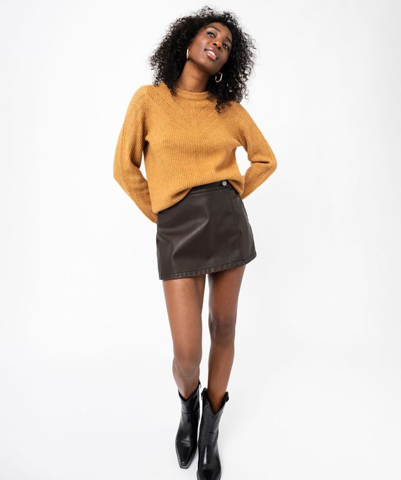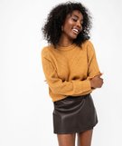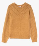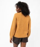 Ce pull pour femme se distingue par une élégante découpe en maille ajourée ornant le haut du buste, qui s’étend gracieusement sur les manches. Ce pull à col rond qui allie parfaitement élégance et confort grâce à sa maille douce et chaude contenant de la laine. Idéal pour un look décontracté avec une touche glamour, il peut se porter seul ou superposé sur un chemisier. Finitions en bord-côte.