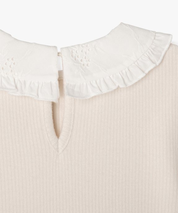 Pull en maille côtelée avec col Claudine brodé fille ecru