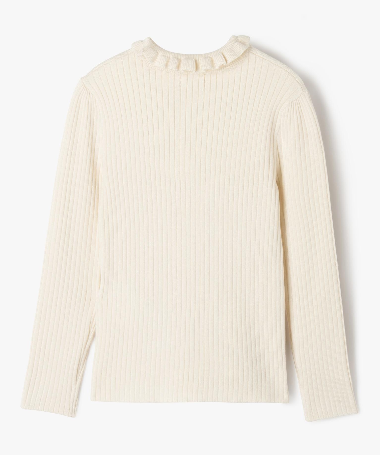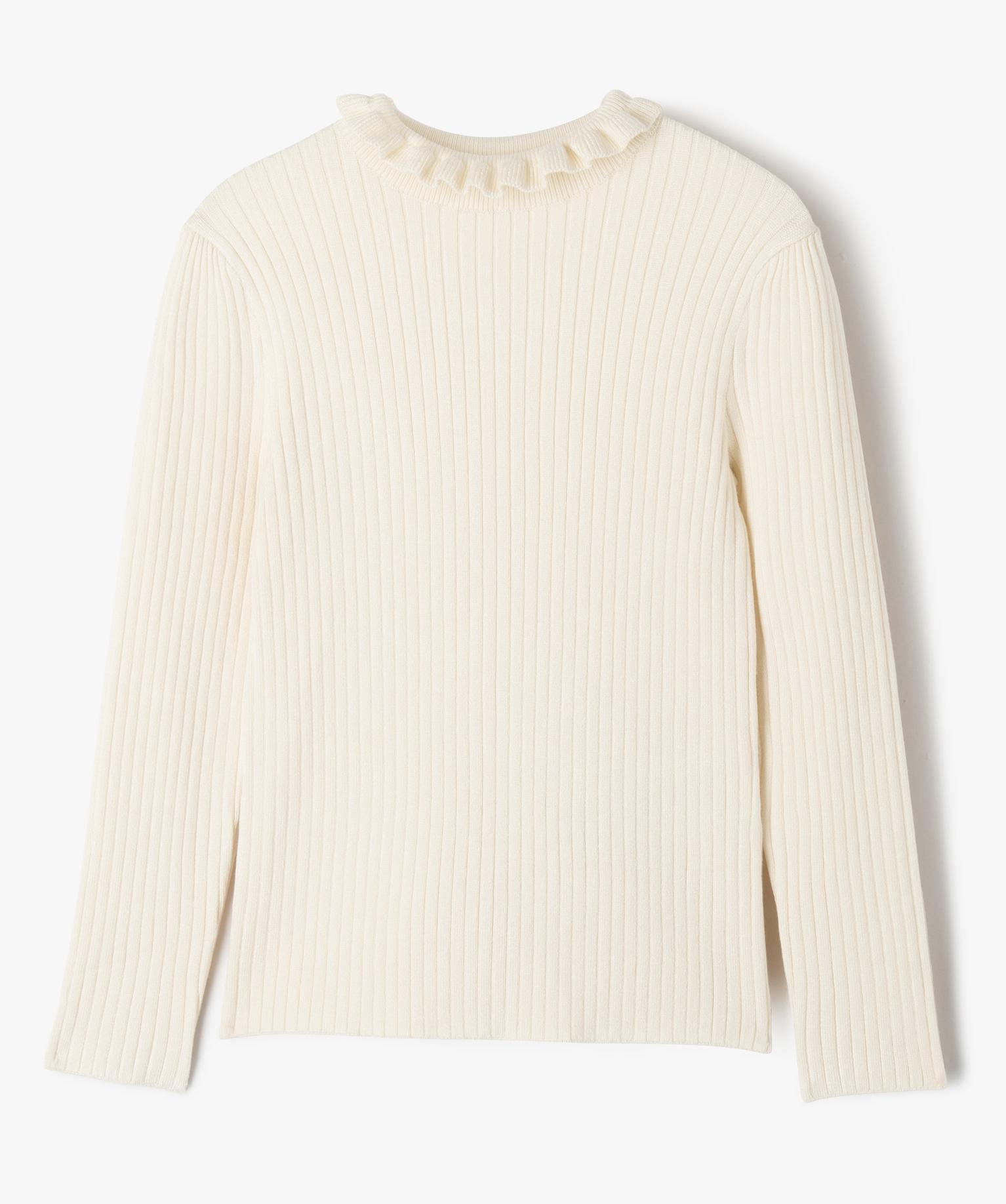 Pull en maille côtelée avec col montant froncé fille blanc chine