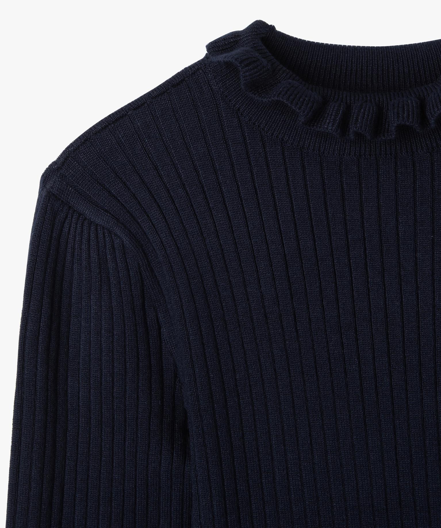 Quel style ce pull côtelé avec son adorable col montant froncé ! Il apportera une belle touche d’élégance à toutes les tenues des filles. Un pull chaussette à la coupe ajustée, tricoté dans une maille très extensible. Ce pull fille sera parfait sous une robe à bretelles, avec un collant assorti et des boots, ou bien avec une jupe à volants et des ballerines pour une allure ultra chic.