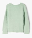 Laissez-vous séduire par la douceur et la panoplie de couleurs douces de ce pull fille ! Le pull est fabriqué dans une maille côtelée extensible, pour une coupe près du corps qui reste très confortable. Il se démarque particulièrement par sa maille duveteuse très élégante. Le pull à manches longues présente un col rond classique à accessoiriser de bijoux fantaisie ou d'une jolie écharpe. Ce pull pour fille sera parfait avec un jean wide leg tendance ou glissé sous une salopette.