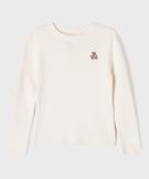Ce pull fille au charme minimaliste s’intégrera dans de nombreux looks, s’associant aussi bien avec un pantalon qu’avec une salopette ou une jupe. Un pull en maille côtelée 100% coton signé LuluCastagnette, orné de l’emblématique ourson brodé sur la poitrine. Ce pull uni possède un col rond et une coupe droite confortable et facile à porter en toutes circonstances. Un indispensable du vestiaire des petites filles.