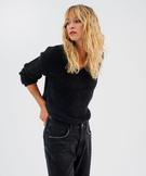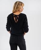 Ce ravissant pull femme ajoutera une touche glamour à vos looks d'hiver. Le pull en maille duveteuse, douce et très extensible, affiche une coupe ample avec épaules tombantes et une double encolure en V. Au dos, l'encolure est agrémentée de liens à nouer. Ce pull large aux accents festifs est proposé dans différents coloris rehaussés de petites touches de brillances et de sequins. Il se porte en soirée avec un pantalon slim et des escarpins. Finition bord-côte aux poignets et dans le bas.