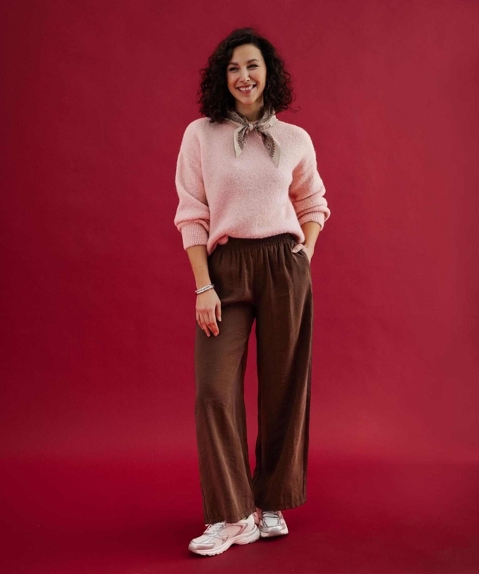 Pull en maille douillette coupe loose femme rose