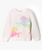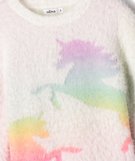 Pull en maille duveteuse et motif licorne fluo fille ecru