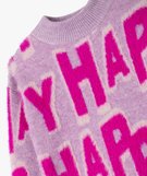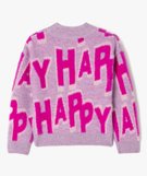 Ce pull en maille peluche ajoutera de la douceur et de la couleur dans le vestiaire des filles ! Un pull original entièrement parsemé d’inscriptions « Happy » qui permettra de booster les looks du quotidien. Associé à un jean et des baskets, ce pull fille est idéal pour composer des looks dynamiques et positifs ! Col montant. Finitions en bord-côte.