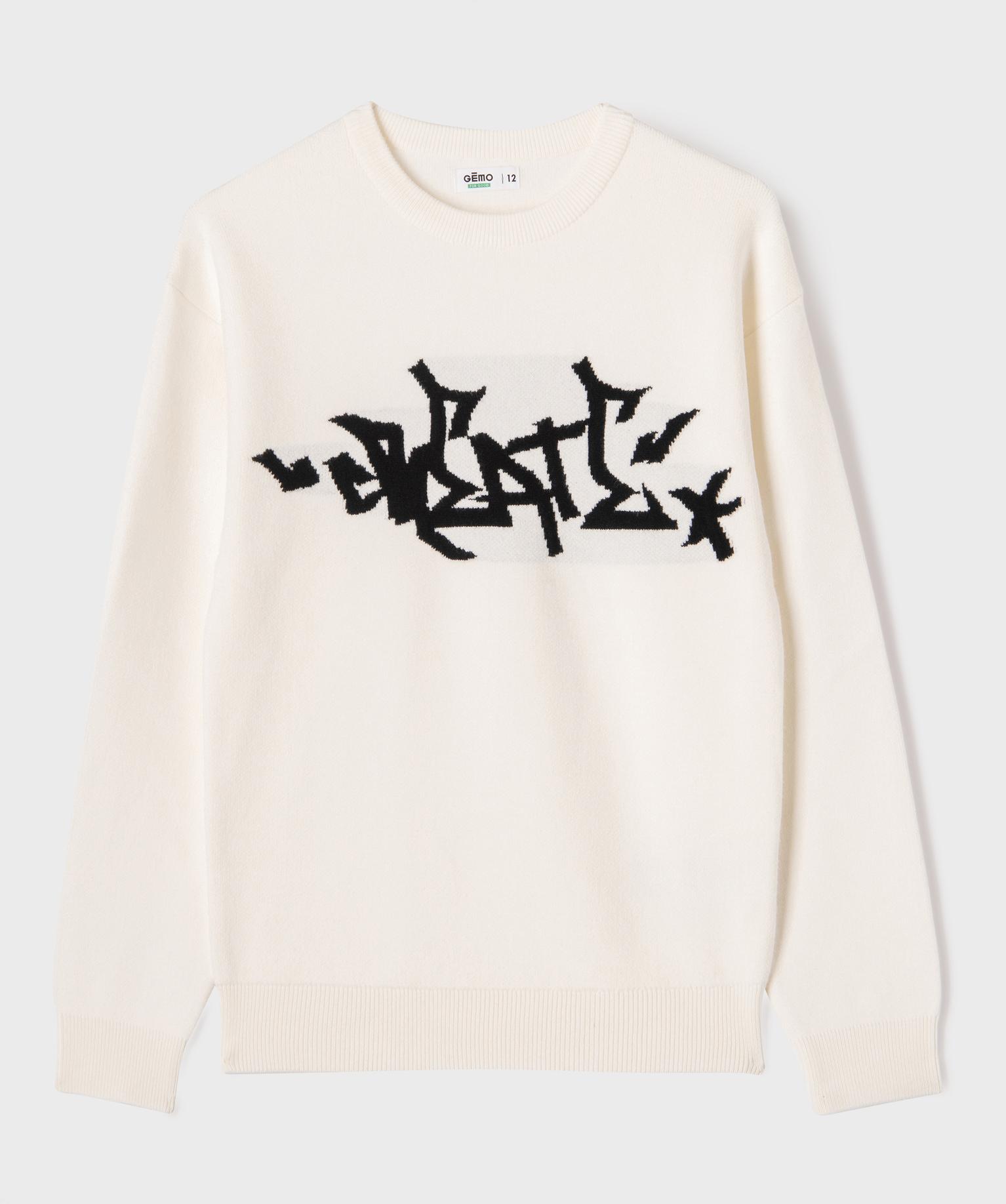 Ce pull garçon séduit tant par son inscription graphique sur la poitrine que par la douceur de sa matière. Un pull douillet au design original qui apportera une touche de fantaisie aux looks des ados. Il affiche une coupe classique resserrée par des bord-côte aux poignets et dans le bas, avec col rond. Il accompagne aussi bien un jean qu’un pantalon chino pour un look urbain au top du style.