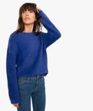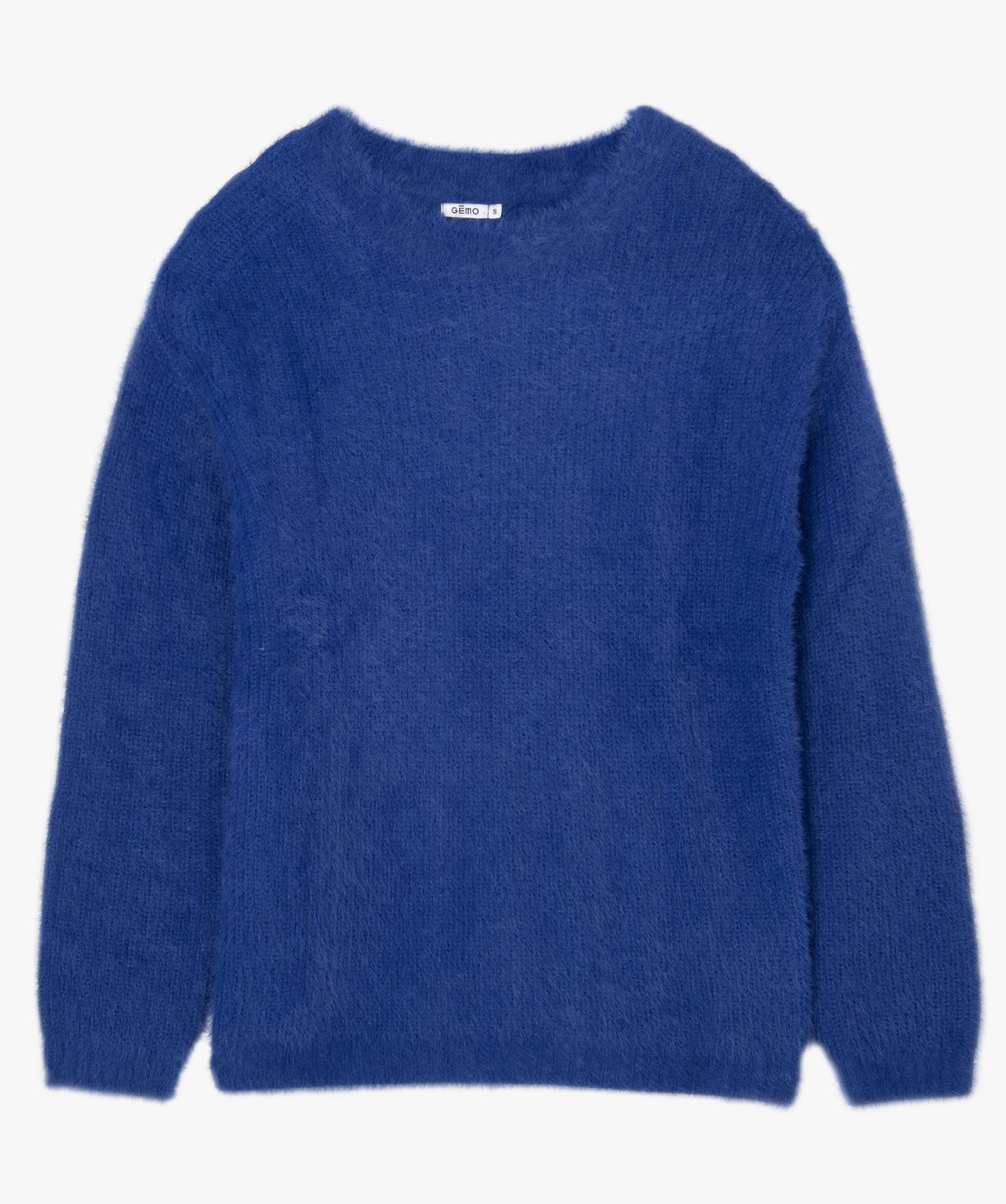 Pull femme à col rond en maille duveteuse bleu clair