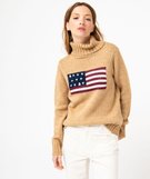 Pull femme à col roulé avec drapeau - LuluCastagnette beige chine