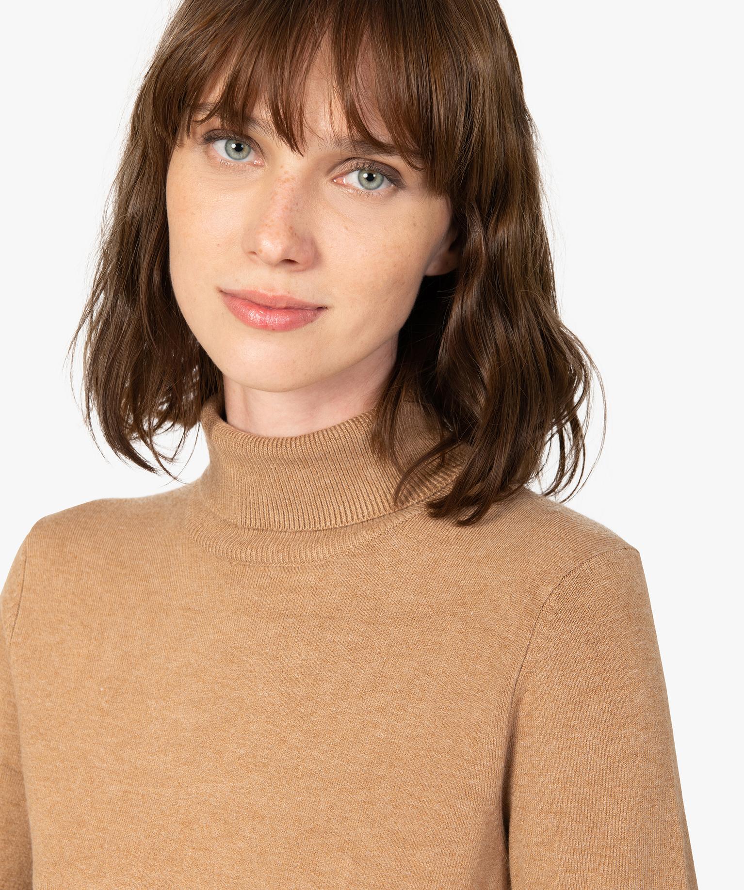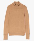 Pull femme à col roulé et boutons sur les poignets marron vif
