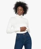 Pull femme à col roulé et boutons sur les poignets jaune clair