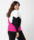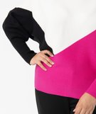Avec ses manches chauve-souris, sa maille horizontale et son bel effet graphique, ce pull pour femme grande taille (du 46/48 au 54/56) apportera une touche de modernité et de tendance à toutes vos tenues ! Vous apprécierez son effet loose avec une jupe crayon ou un jean slim par exemple. Ce pull multicolore illuminera votre teint par ses couleurs fortes et contrastantes. Son encolure large dégagera votre cou pour un élégant porté de tête. Long bord-côte resserré aux poignets.