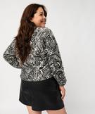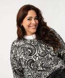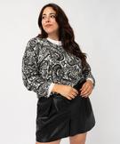 Dynamisez vos looks grâce à ce pull multicolore, tricoté dans une maille douce contenant une touche de laine. Un pull pour femme grande taille orné de motifs abstraits, avec col rond et finitions non resserrées en bord-côte. Un pull chaud et pétillant à porter avec un pantalon en toile et une paire de boots à talon.
