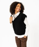 Must-have de la saison, le pull sans manches ! Un pull pour femme doux, confortable et facile à enfiler qui se porte aussi bien sur un tee-shirt à manches longues, que sur une chemise ou un pull fin Ce pull col V nous séduit aussi par sa composition plus éco-responsable car il contient 52% de polyester recyclé. Grâce à sa touche de laine et d’alpaga, il offre une douceur unique et une chaleur très confortable. Bas fendu sur les côtés. Finitions bord-côte dans le bas.