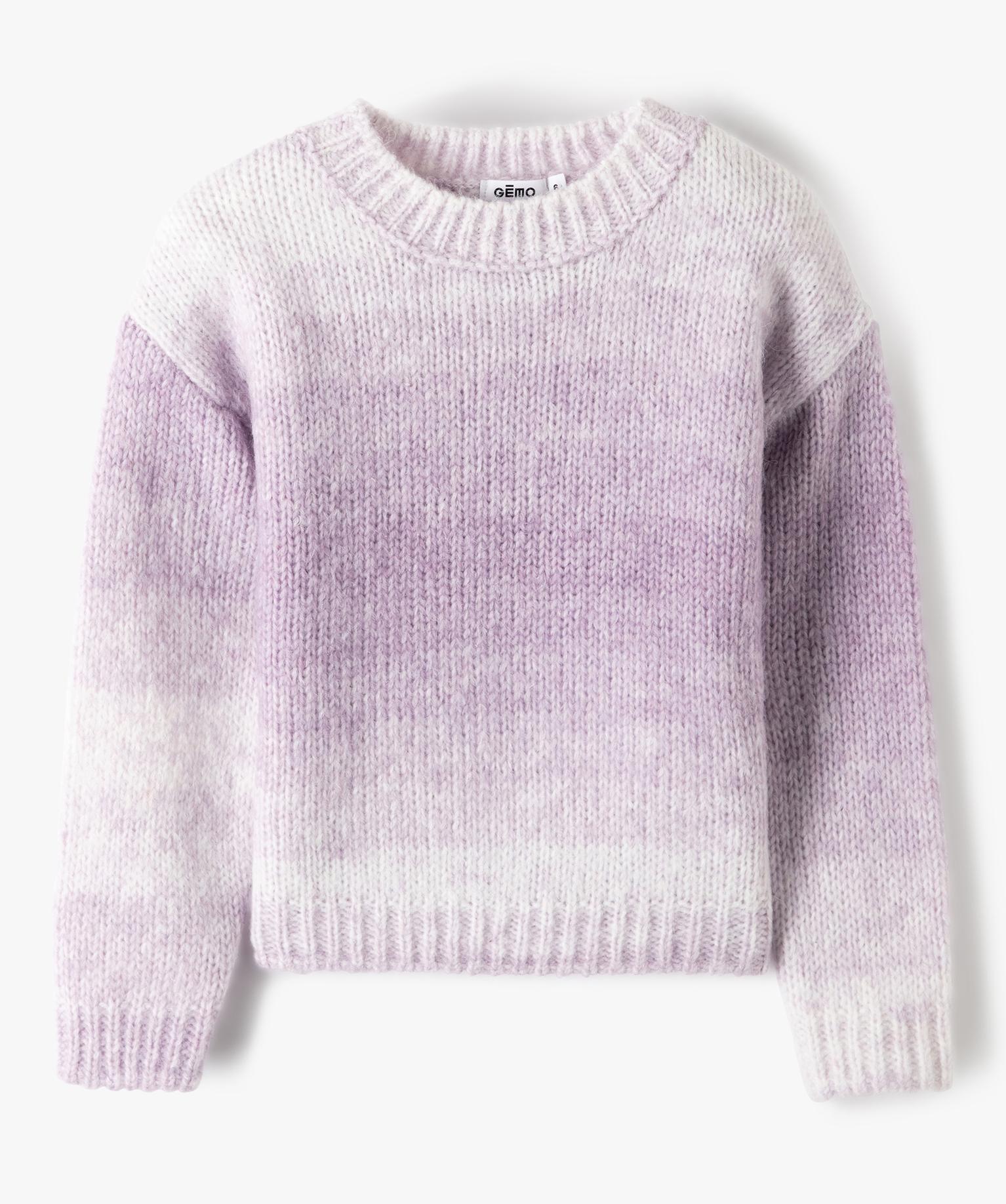 Rien de mieux qu’un pull en grosse maille pour s’envelopper de douceur ! Les filles vont craquer pour le look vintage de ce pull douillet au coloris girly. Un pull fille qui joue sur une jolie association de coloris pour un effet multicolore ou tie and dye en fonction des modèles. Sa coupe ample s’accordera idéalement avec un pantalon slim pour jouer les contrastes. Col rond. Finitions bord-côte au col, dans le bas et aux poignets.