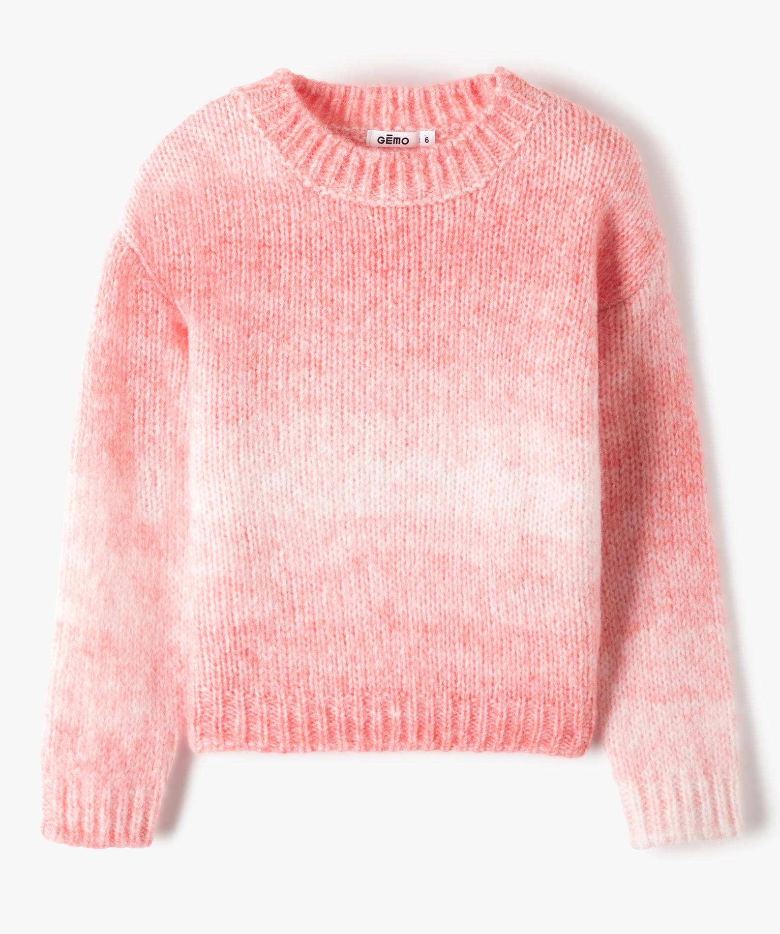 Pull fille à col rond en grosse maille rose