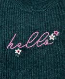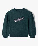 Ajoutez une touche de romantisme dans le vestiaire des petites filles avec ce joli pull en maille chinée. Un pull fille avec manches bouffantes, froncées aux épaules et tricotées dans une maille fantaisie. Il est agrémenté d’un message et de jolies fleurs brodées sur le buste. Ce pull à message accompagnera parfaitement une jupe et une paire de derbies. Finitions bord-côte au col, aux poignets et dans le bas.