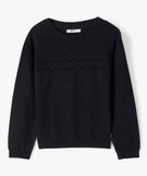 Le pull en maille fine accompagne votre enfant avec élégance tout au long de l'année : il réchauffe une petite robe les soirs d'été, se glisse facilement sur un gilet porté ouvert en hiver, et se combine à une veste en jean ou une chemise à manches longues à la mi-saison. Décliné dans de nombreux coloris et joliment ajourée au niveau de l'encolure, ce pull fille plaira à coup sûr à votre enfant. Finition bord-côte au col, aux poignets et dans le bas. Coupe droit. Ajours sur l'avant seulement.