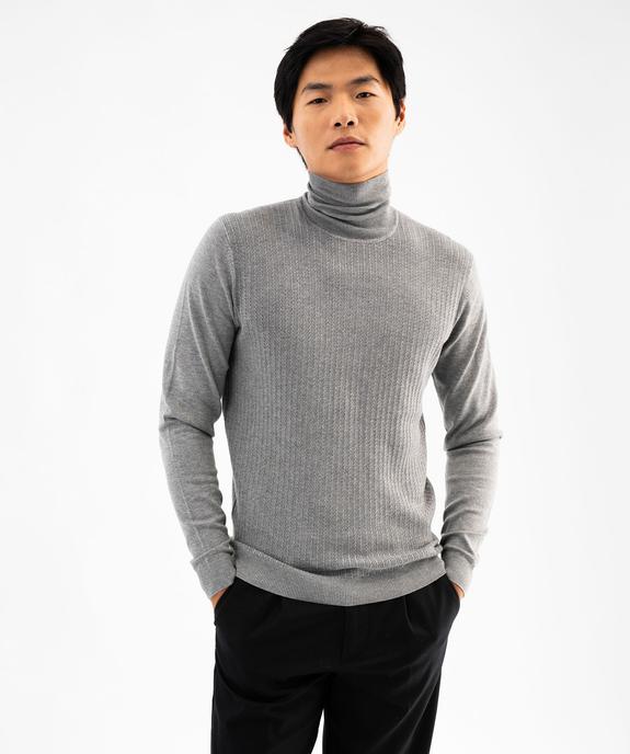 Pull fin à col roulé maille fantaisie sur l’avant homme gris