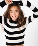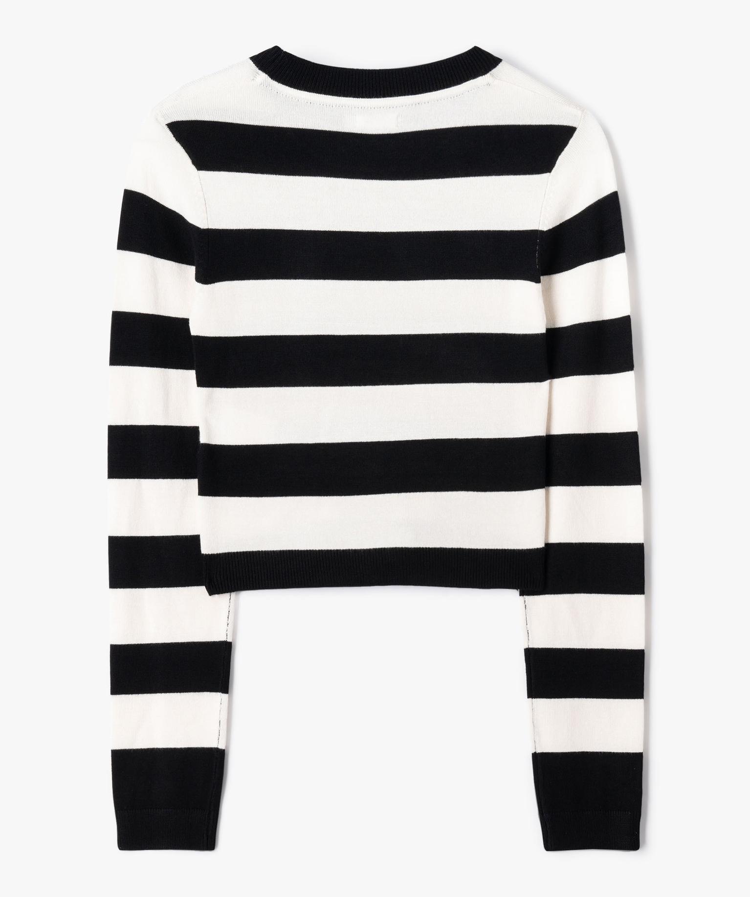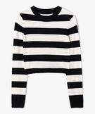 Pull fin à rayures et coupe courte fille raye noir et blanc