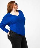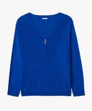 Pull fin avec col V zippé femme grande taille bleu