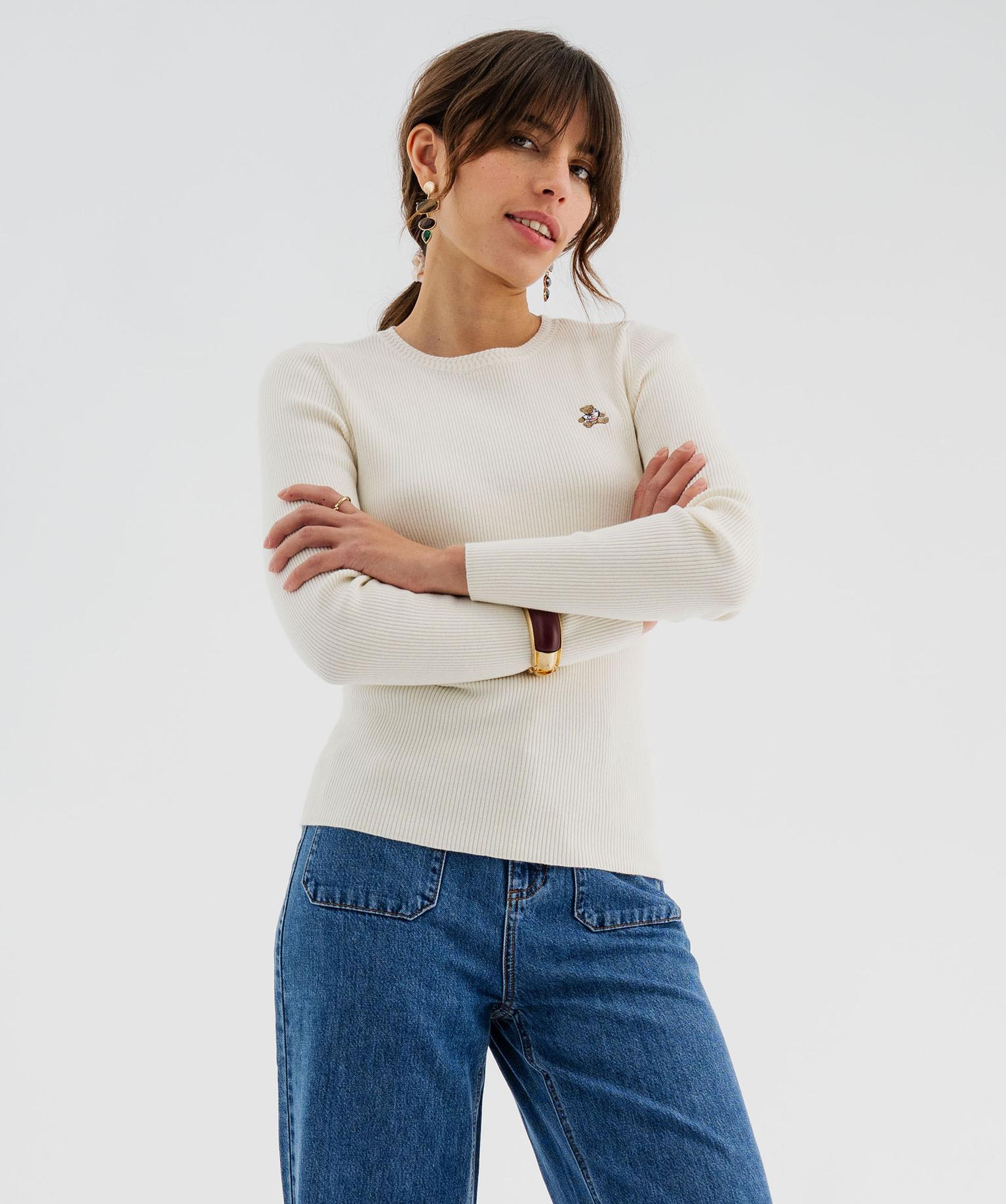 Pull fin en maille côtelée à col rond femme - LuluCastagnette ecru