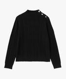 Ce joli pull en maille fine ajoutera une discrète touche de fantaisie à vos tenues classiques. Affichant de jolis motifs torsadés et ajourés, il offre un subtil jeu de transparence apportant un esprit glamour à votre look. Ce pull femme est doté d’un col montant qui s’ouvre sur une épaules grâce à de jolis boutons métalliques. Ses finitions en bord-côte avec bord dentelé ajoutent une touche de chic sur le col, sur les poignets et dans le bas. Ce pull à col montant sera le meilleur allié d’une jupe crayon et d’une paire d’escarpins.