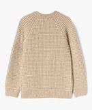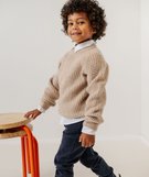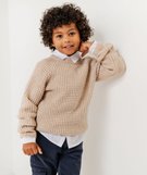 Ce pull garçon a toute sa place dans le vestiaire hivernal des enfants. Tricoté dans une maille fantaisie qui lui donne un beau relief, avec des emmanchures raglan confortables, ce pull n'est pas si classique. Et il fera des merveilles avec un jean baggy comme avec un pantalon chino ! Il contient de la laine, pour la douceur et la chaleur. Finition côtelée au col, aux poignets et dans le bas.