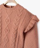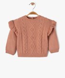 Pull grosse maille torsadée à volants bébé fille rose