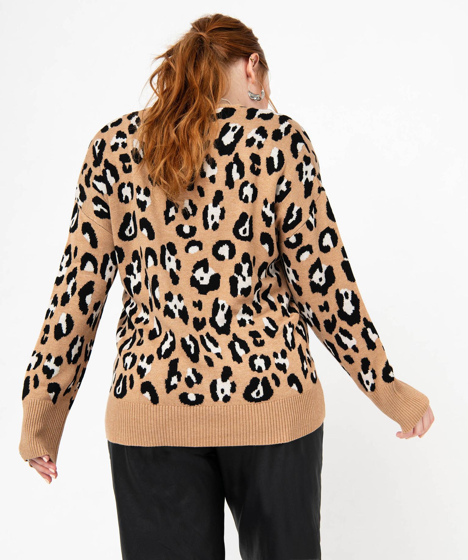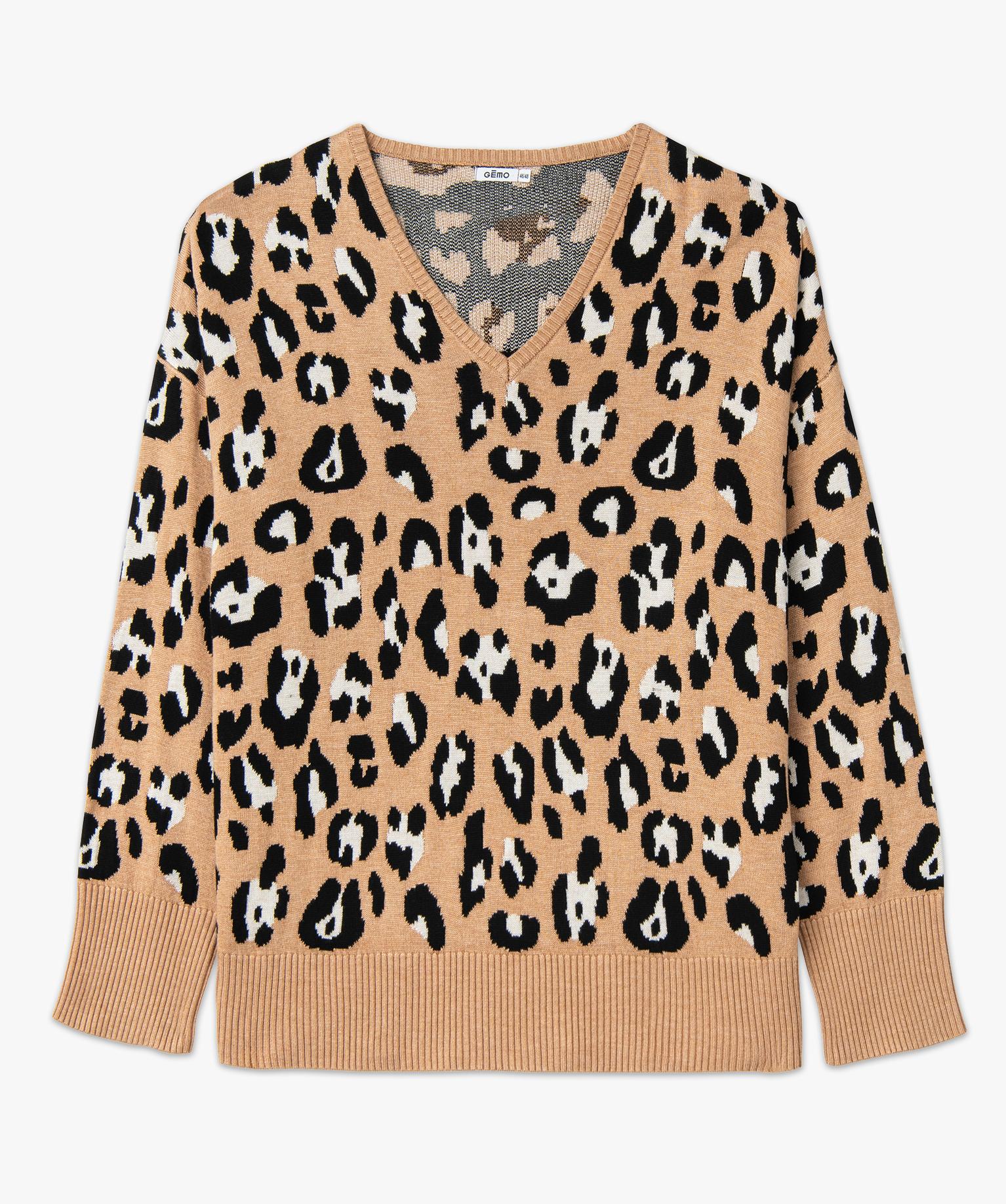 Pull imprimé à col V femme grande taille marron