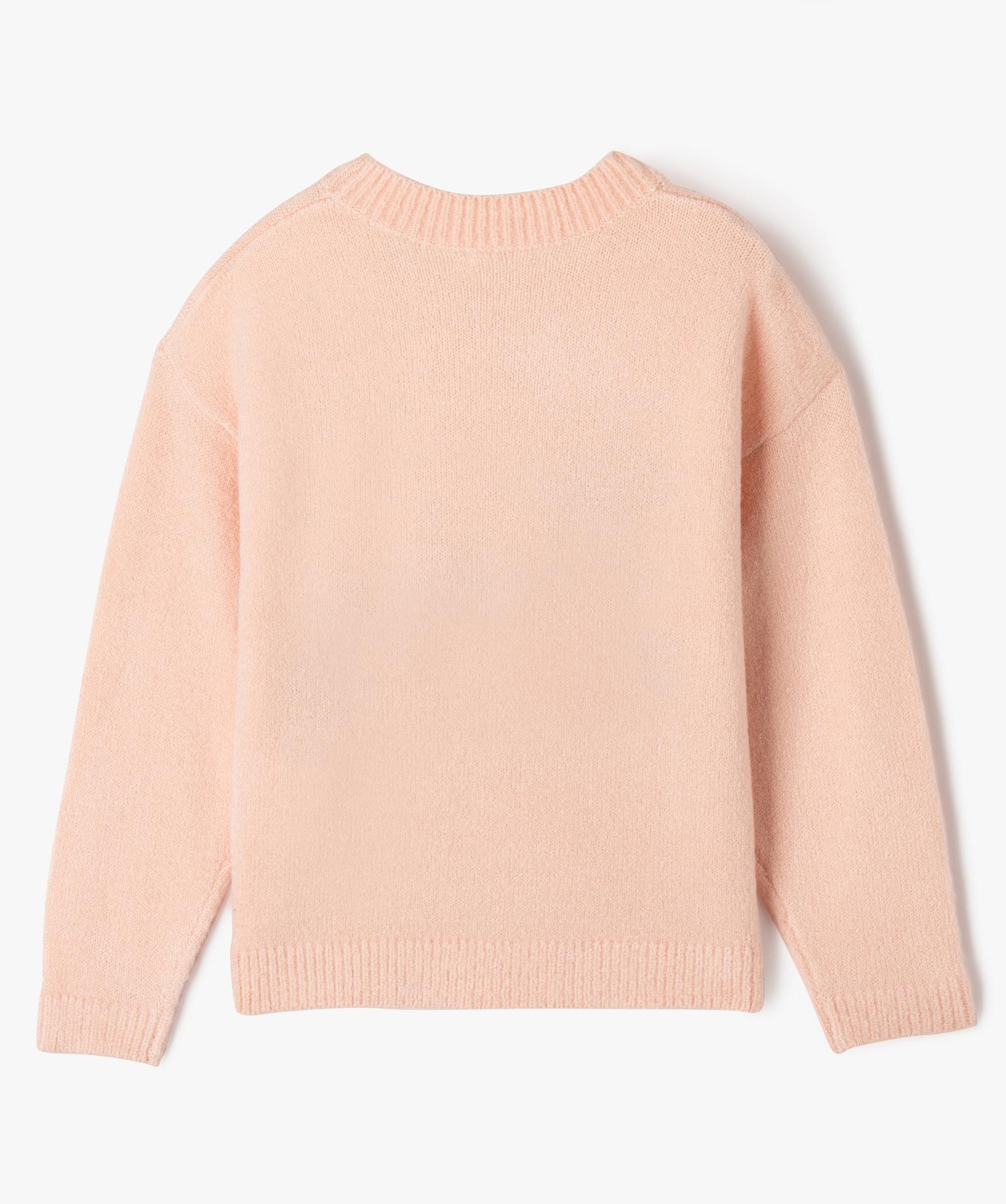 Pull imprimé en maille extensible fille rose