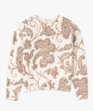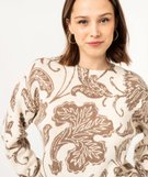 Le pull d'hiver pour femme composé de laine se pare d'un imprimé fleuri, pour rester au chaud avec style cette saison. La coupe classique est légèrement loose, pour une silhouette casual aussi bien avec une jupe qu'avec un jean. Pull imprimé. Finition côtelée unie au col, aux poignets et dans le bas.