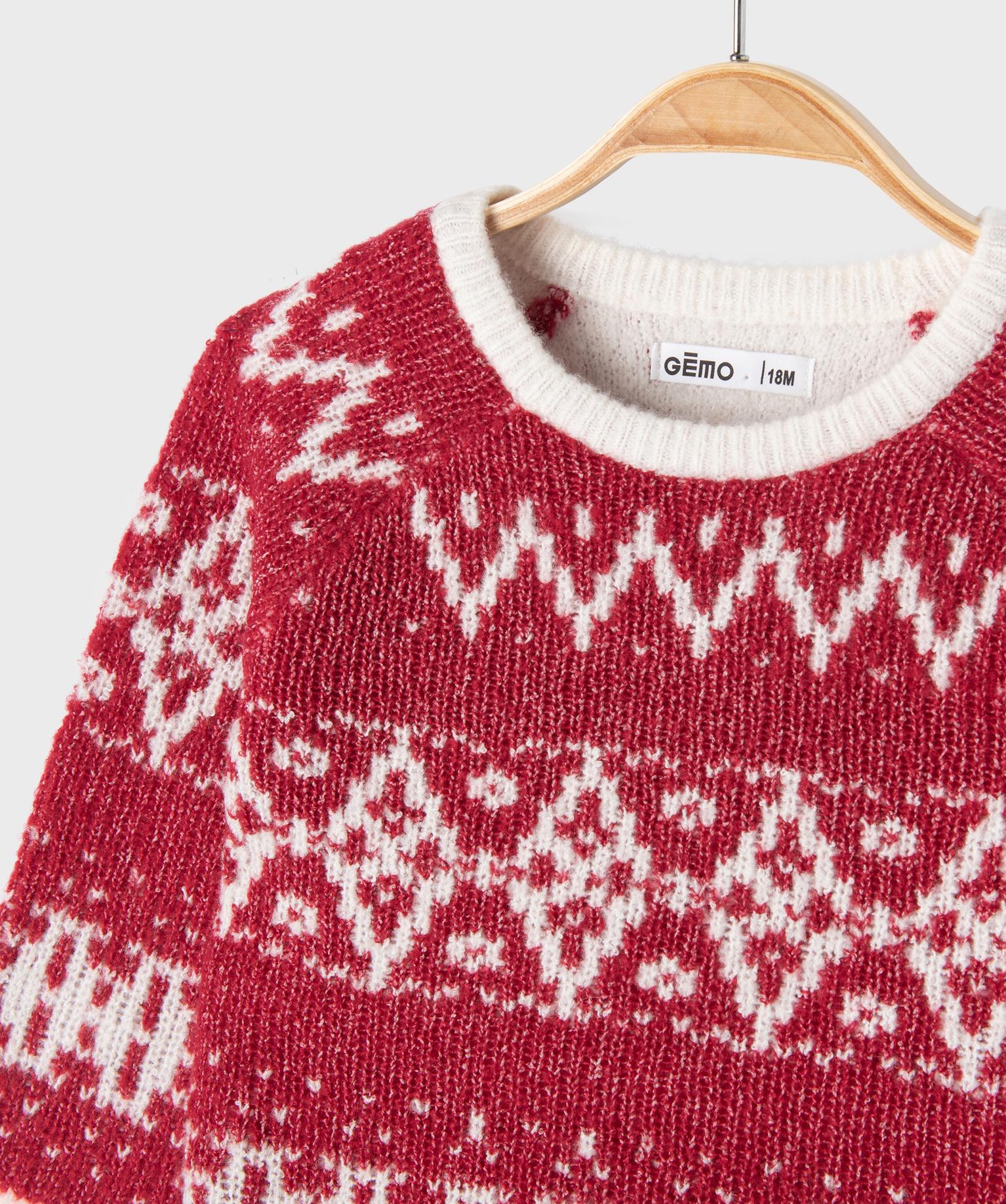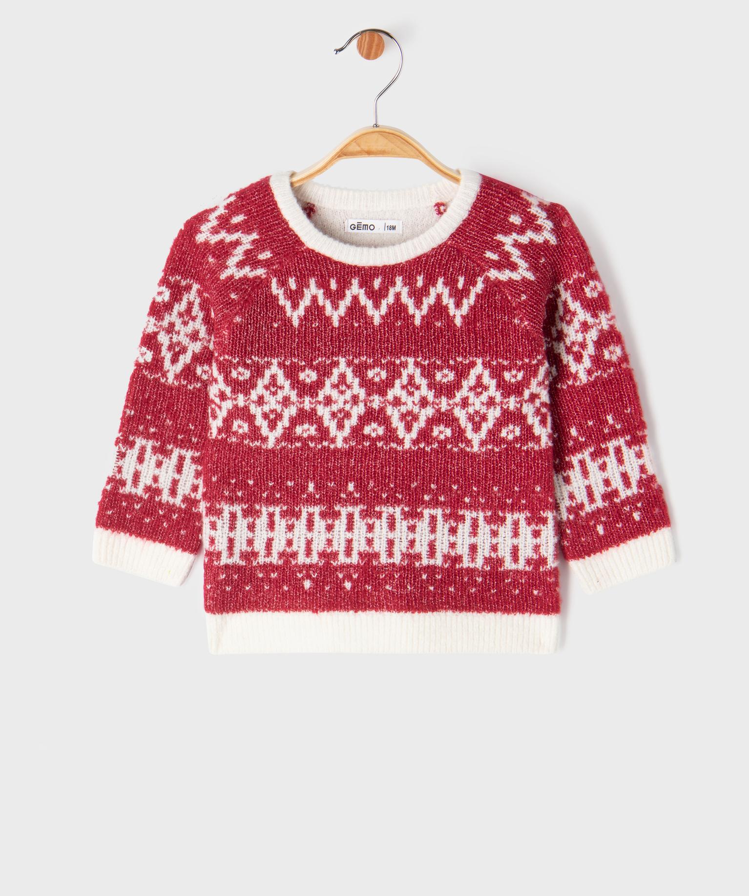 Craquez pour le design intemporel de ce pull jacquard pour bébé, décliné dans les couleurs de Noël. Un pull doté d’un intérieur ultra doux conçu pour envelopper les bébés d’un maximum de douceur. Ses emmanchures raglan offrent une grande aisance de mouvements. Un pull de Noël à porter avec un pantalon en coton et une paire de boots pour une allure festive et décontractée. Finition bord-côte unis.