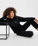 Pull jacquard pailleté et duveteux spécial Noël noir
