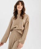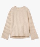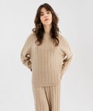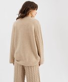 Finition côtelée au col, en bas de manches et dans le bas. Dos sans torsades.