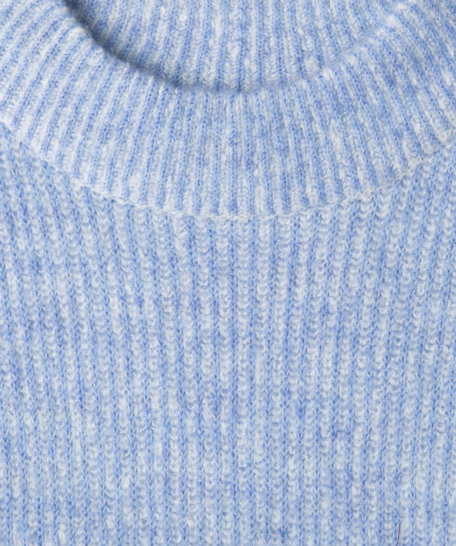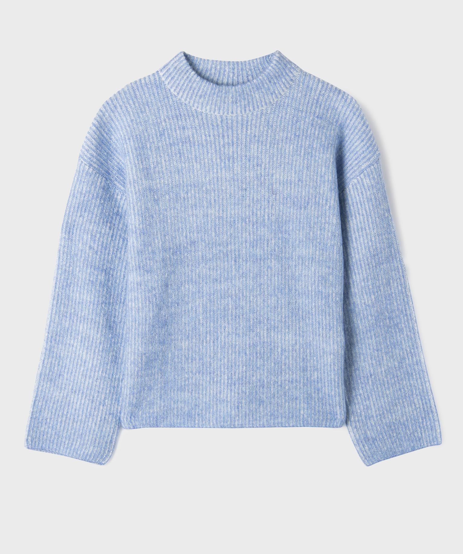 Pull loose en maille côtelée bicolore col cheminée fille bleu