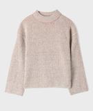 Pull loose en maille côtelée bicolore col cheminée fille marron
