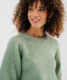 Ce pull pour femme ample et douillet mêle confort et féminité. Sa maille moelleuse, légèrement duveteuse, contient de la laine et de l’élasthanne pour un toucher enveloppant et une tenue souple. Sa coupe décontractée, dotée de manches courtes à emmanchures raglan, donne une allure moderne à tous vos looks. Le col rond côtelé situé juste en dessous de la ligne du cou sublime naturellement le port de tête. Un pull manches courtes pièce tantôt cocooning, tantôt chic, à porter aussi bien avec un jean large qu’une jupe en satin !