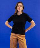 Pull manches courtes en viscose femme noir